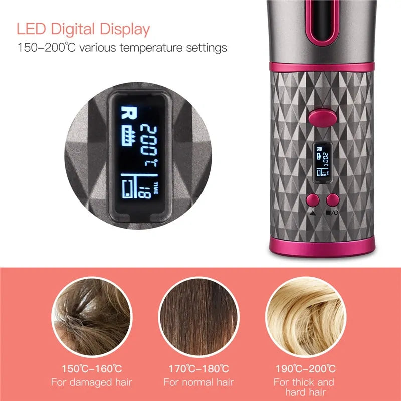 Transform your hairstyle with our Cordless Automatic Hair Curler. Designed for convenience, it curls your hair flawlessly with the touch of a button, making styling quick and effortless.