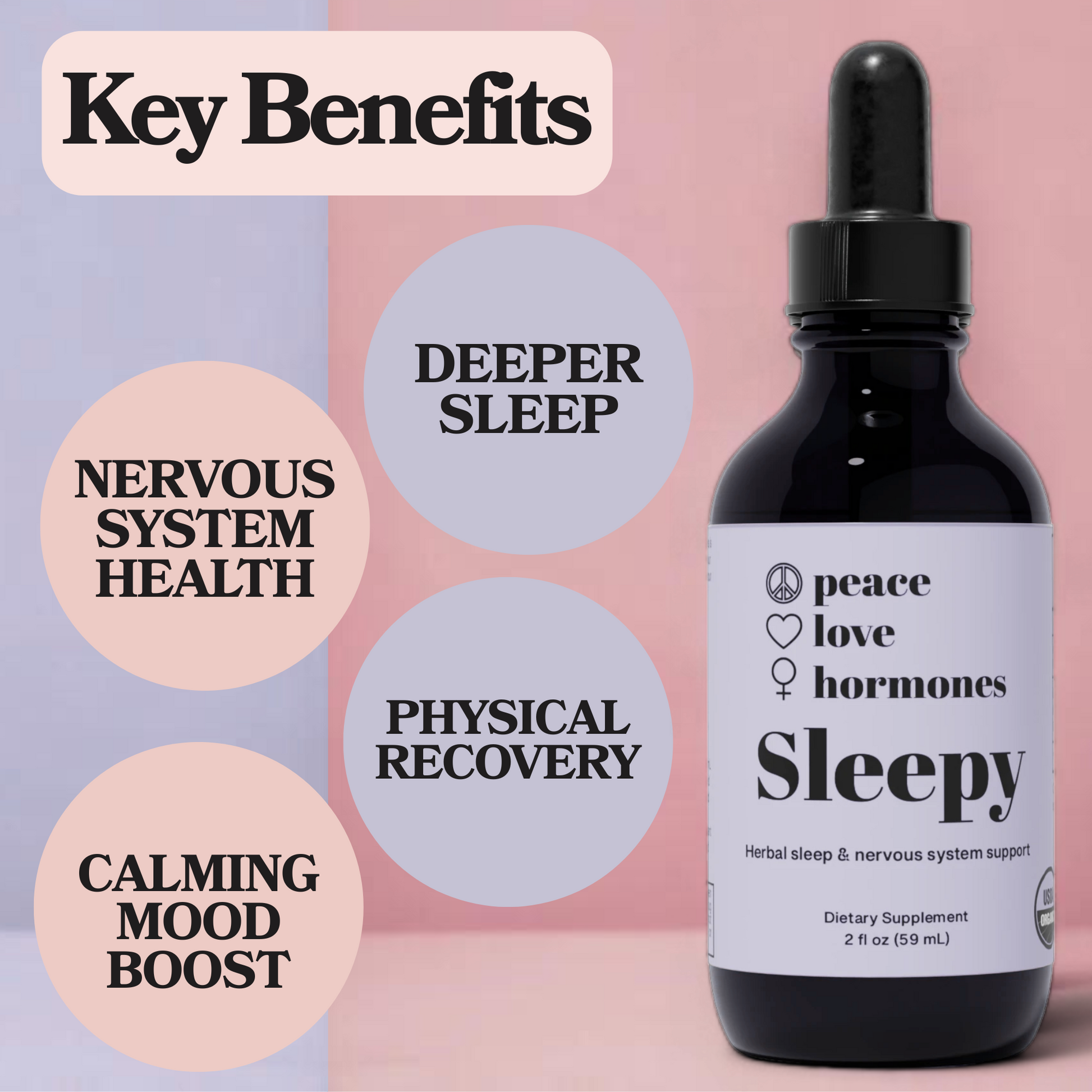 Meet Sleepy - your natural sleep tincture, a carefully crafted herbal blend designed to support restful nights and rejuvenated mornings. This tincture for sleep combines the calming properties of lavender, chamomile, and valerian root with the adaptogenic power of ashwagandha to help ease your mind and promote a natural sleep cycle. Whether you’re struggling with occasional sleeplessness or looking to establish a regular sleep routine, Sleepy is your go-to solution. Simply take 1 mL before bed, and let this sleep tincture work in harmony with your body for a peaceful night’s rest. Wake up feeling refreshed and ready to take on the day.